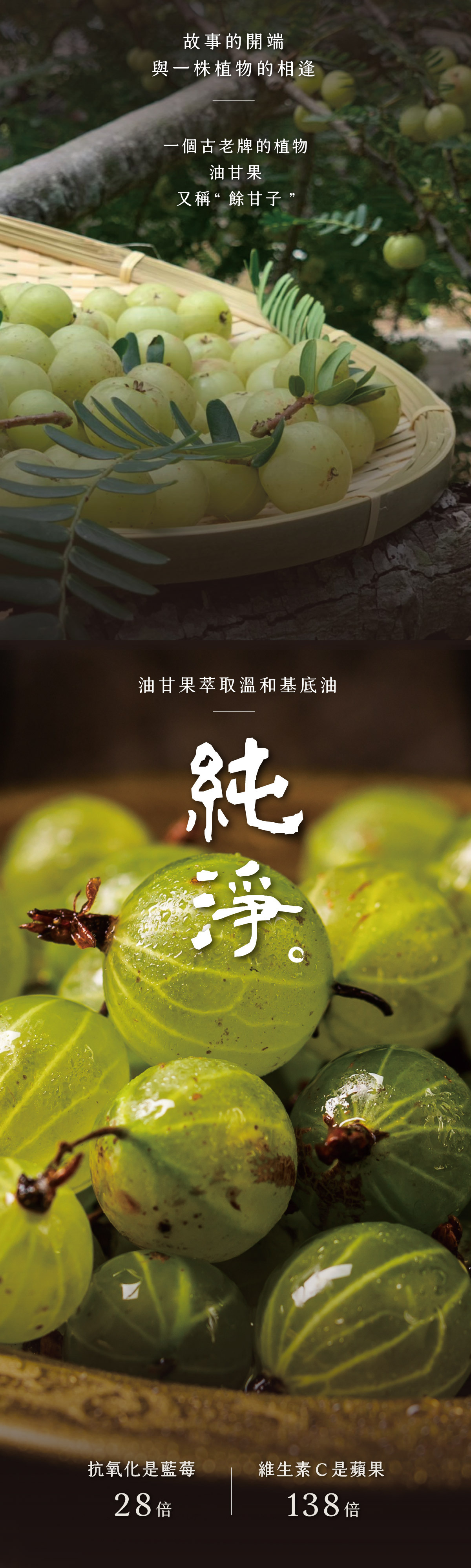 ‧ 採用初萃油甘果作為基底油,低溫冷壓提煉,經過蒸餾,並待生油純化熟成為精油,100%天然植物精油