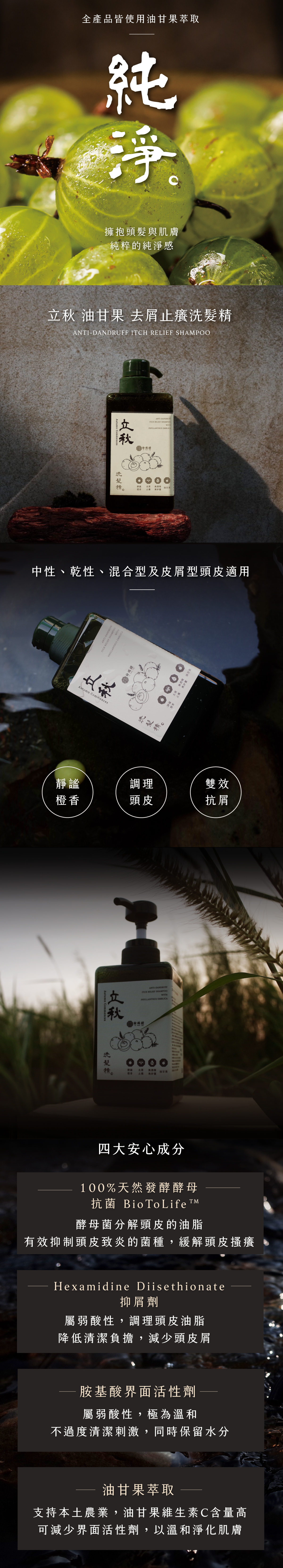 ‧ 中性、乾性、混合型及皮屑型頭皮皆適用|溫和抗屑、調理頭皮、舒緩搔癢