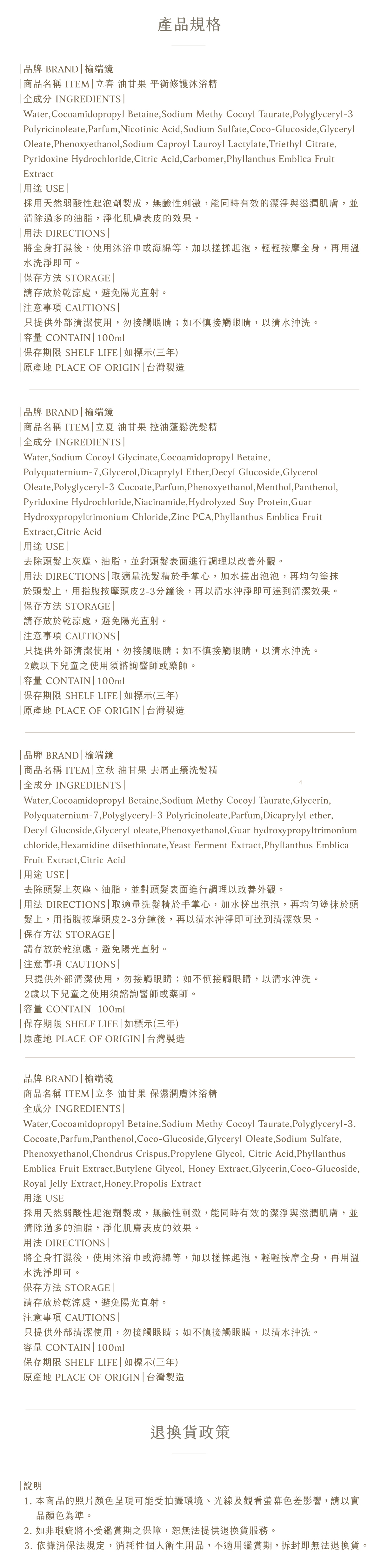 全店,油甘。留甘|滿 $990 贈節氣洗沐試用包 (10ml / 隨機2入)